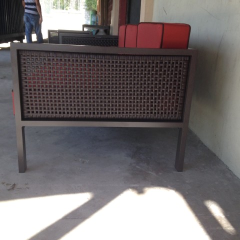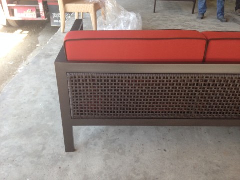 Vega Sofas: Old Bronze w/ Canvas Terracotta Cushions & Canvas Bay Brown Piping